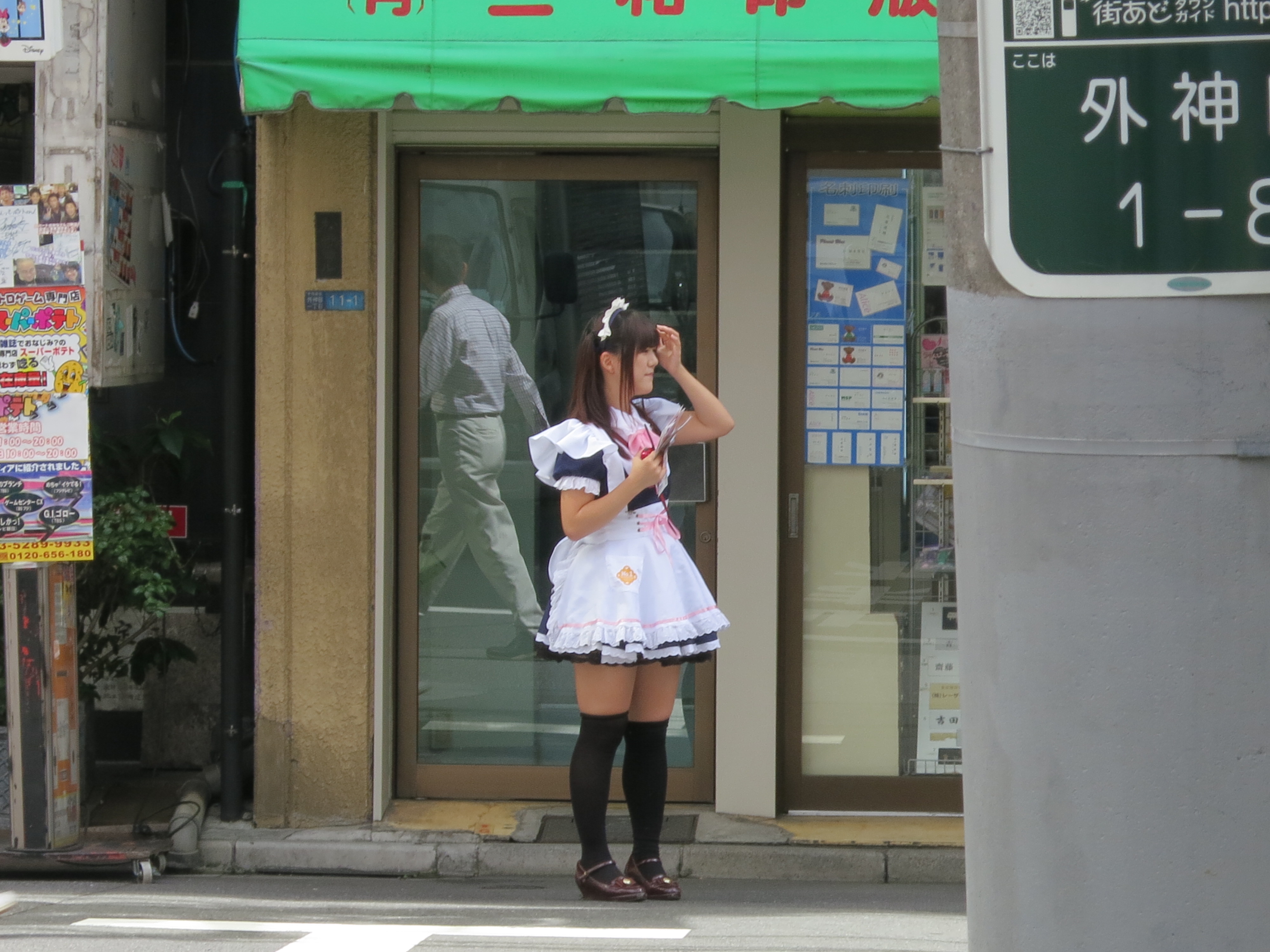 We went to Akihabara today. It’s such a great place if you have even a trace of computer geek in your blood. I saw some really sleek laptop computers and snuck a photo of a maid-cafe’ employee: